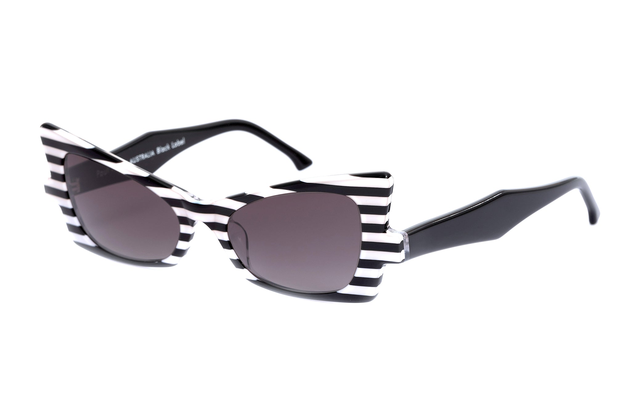 A1 POLARISED Black & White Striped FRONT with Black TEMPLES