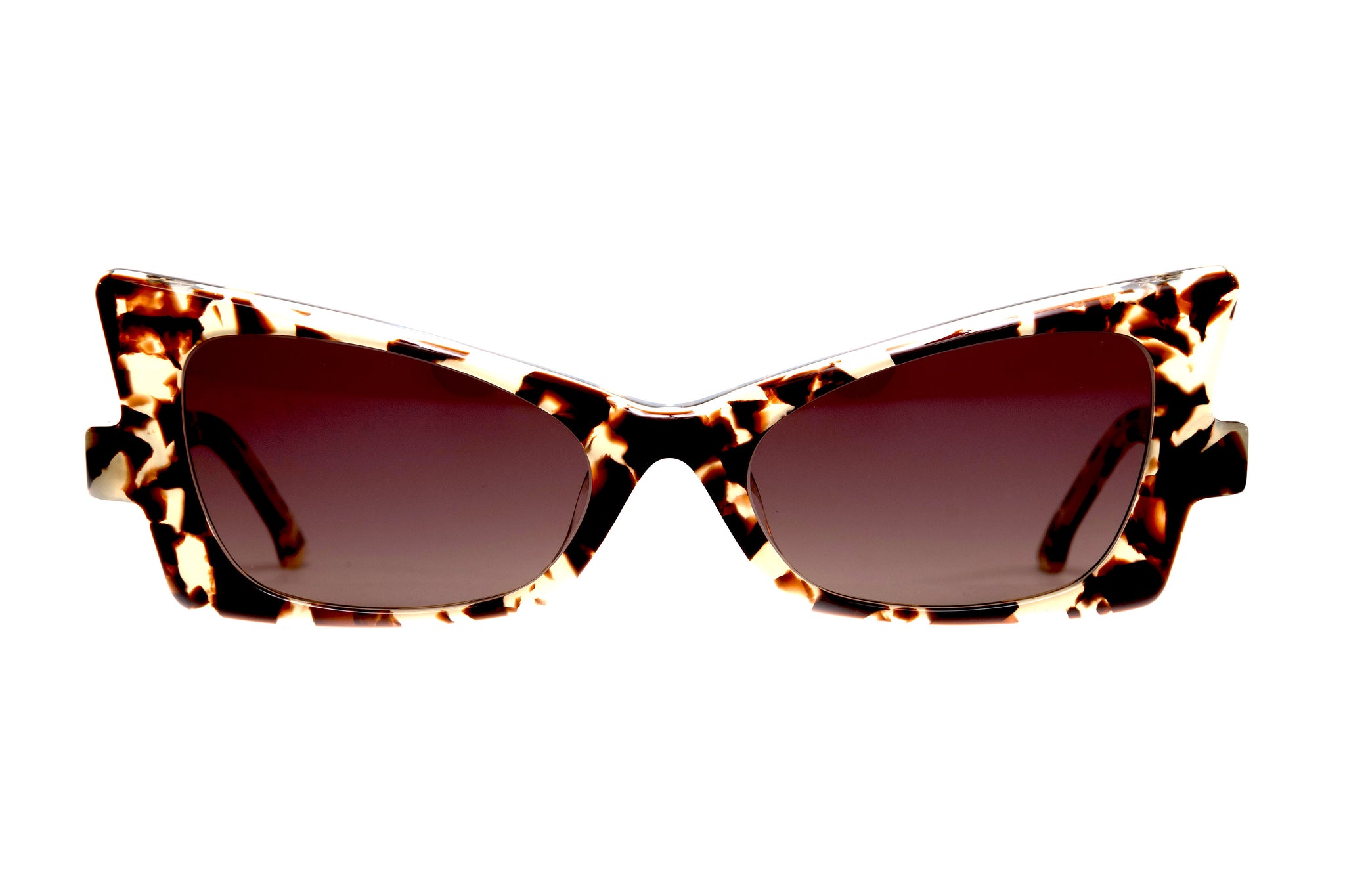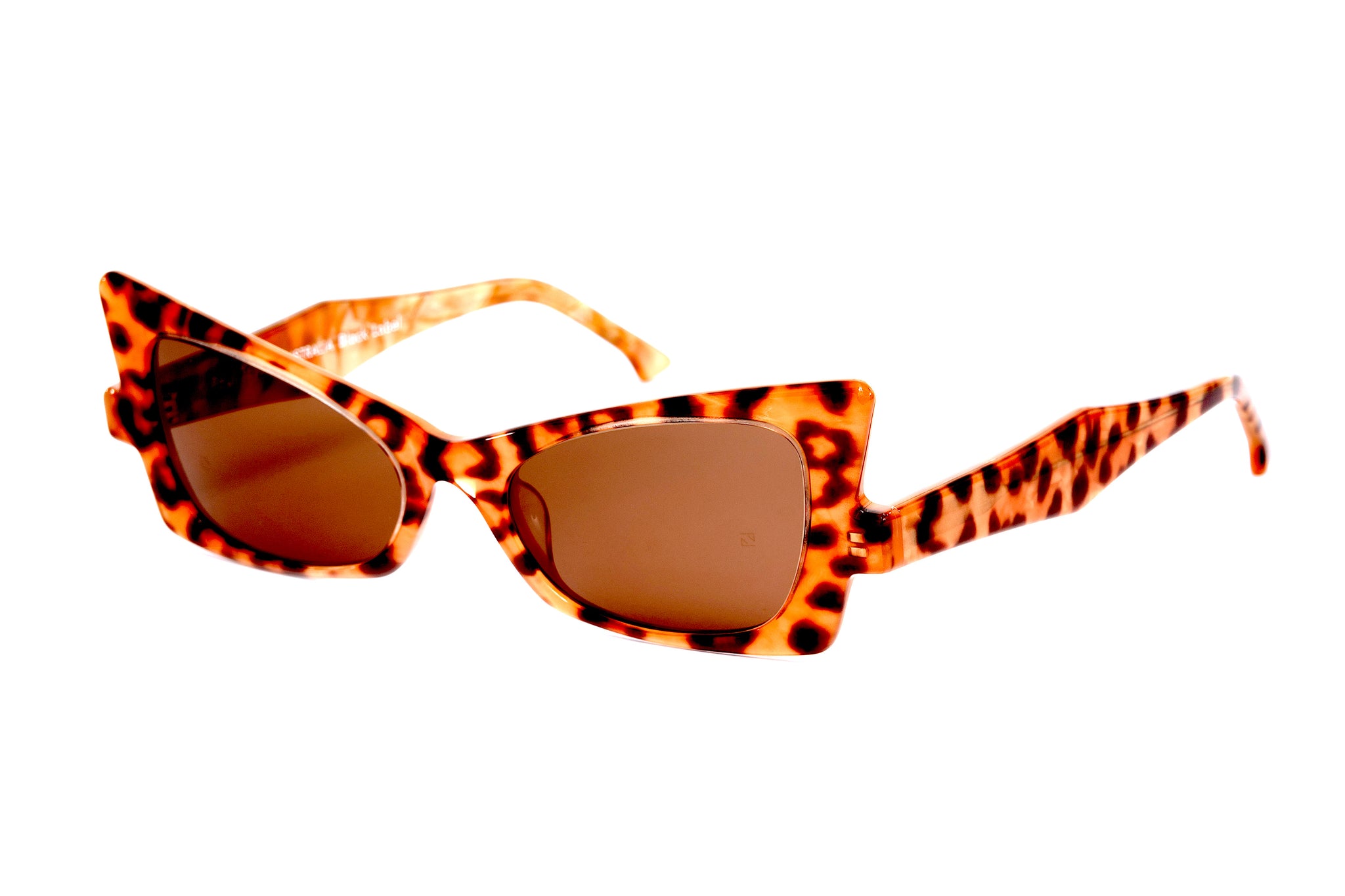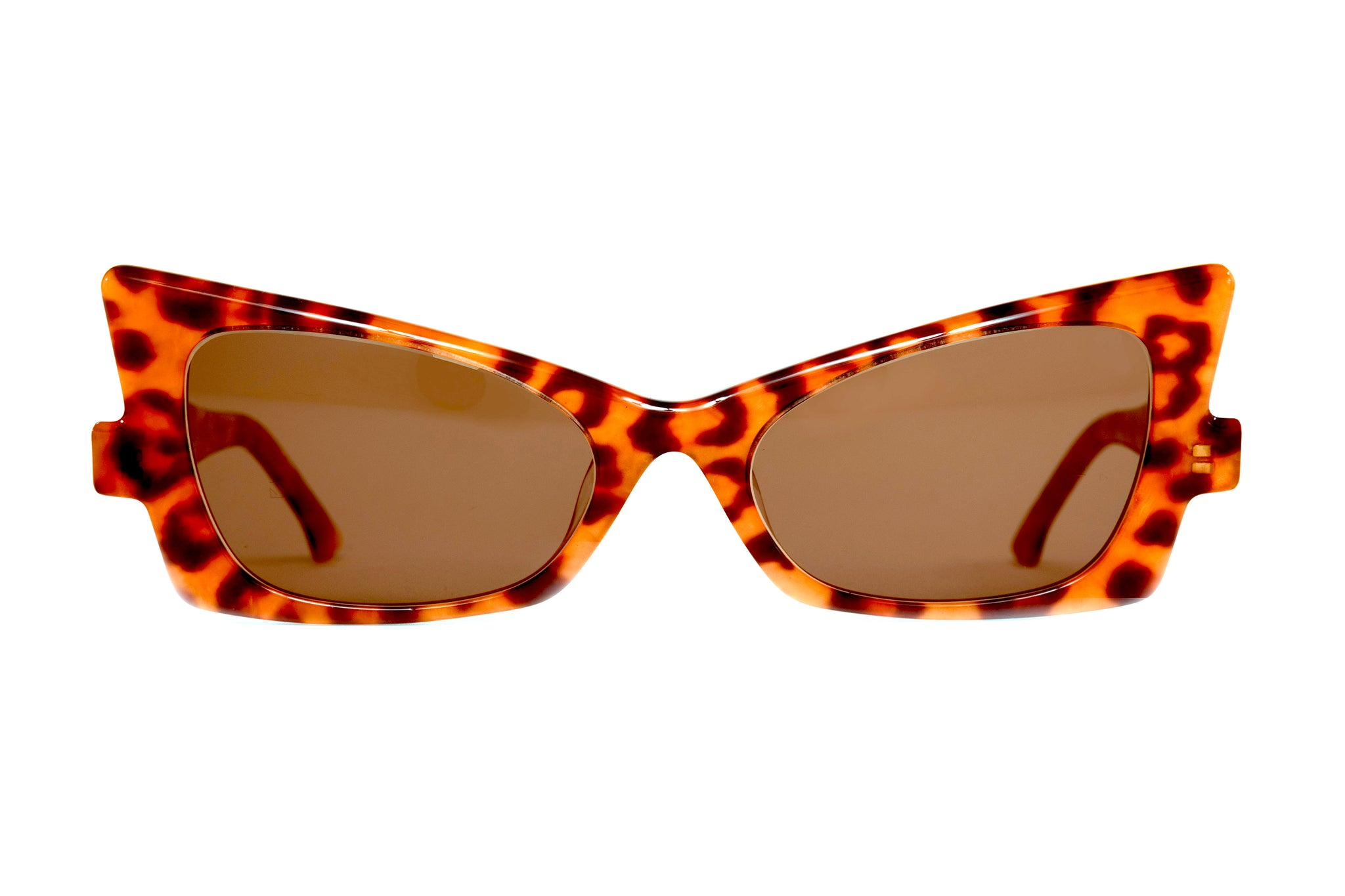The creative spark that led to the "LYNX" creation was the endangered feline of Spain & Portugal, hence the stunning leopard print acetates in this phenomenal quadratic cutting edge design. The forever expanding directional cats eyes in Paul Taylor's masterful cats eye collections inspire women to express, love and enjoy life to the fullest. The LYNX design is an absolute gem!
